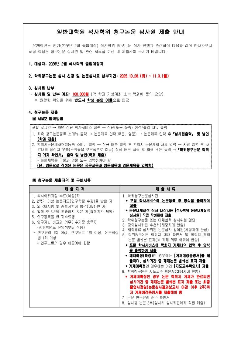 [공지] 2025-2학기 석사학위 청구논문 심사원 제출 안내(2026년 2월 졸업예정자)