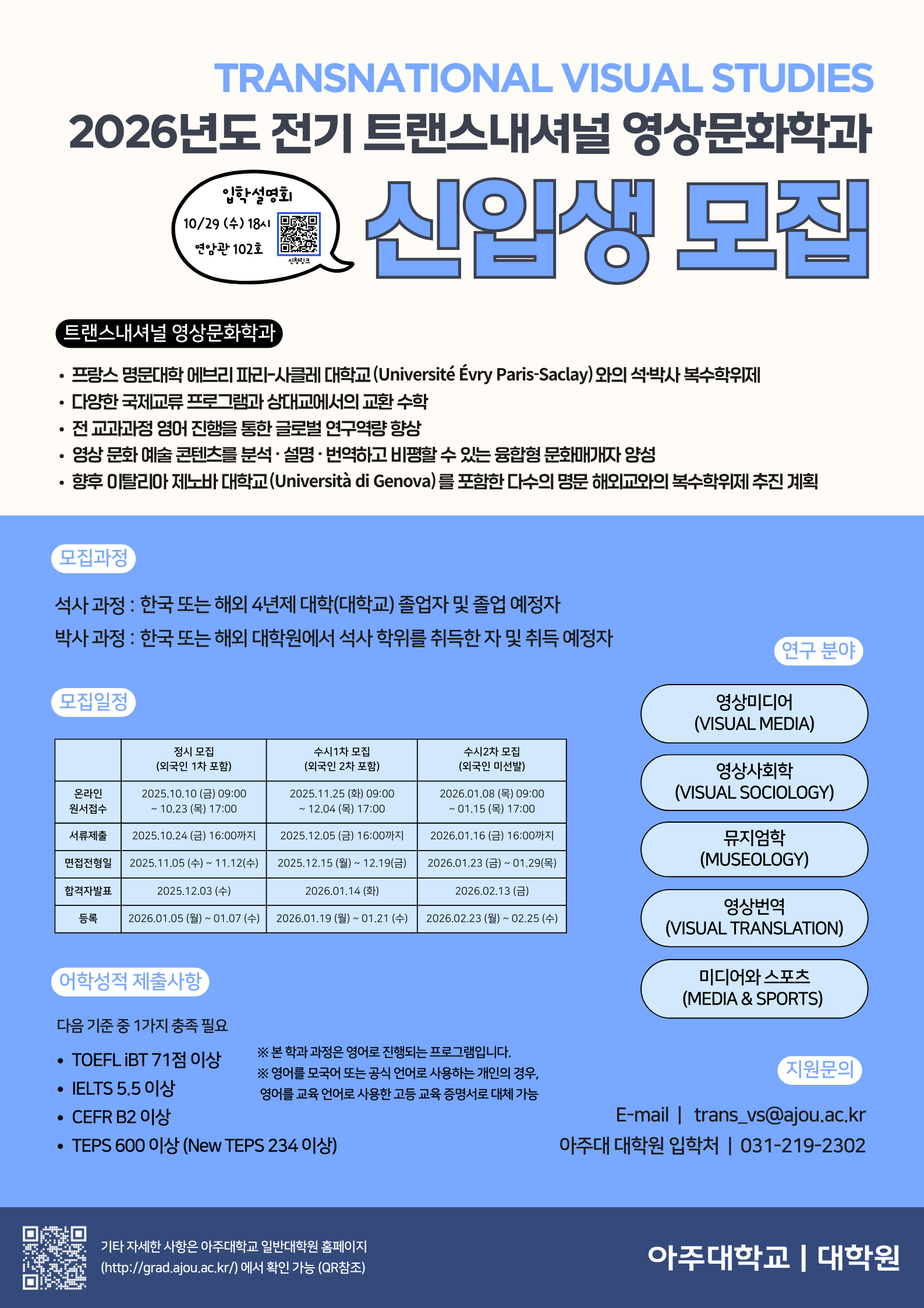 [입학] 트랜스내셔널 영상문화학과 학과설명회 개최