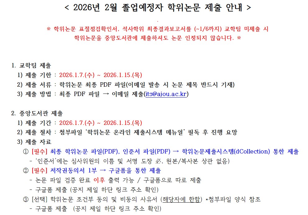 * 학위논문 제출 관련 : https://library.ajou.ac.kr/#/education/dcollection