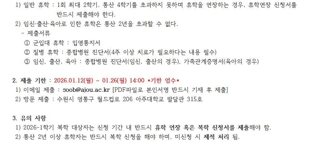 [학사] 2026-1학기 휴학(연장) 및 복학 신청 안내