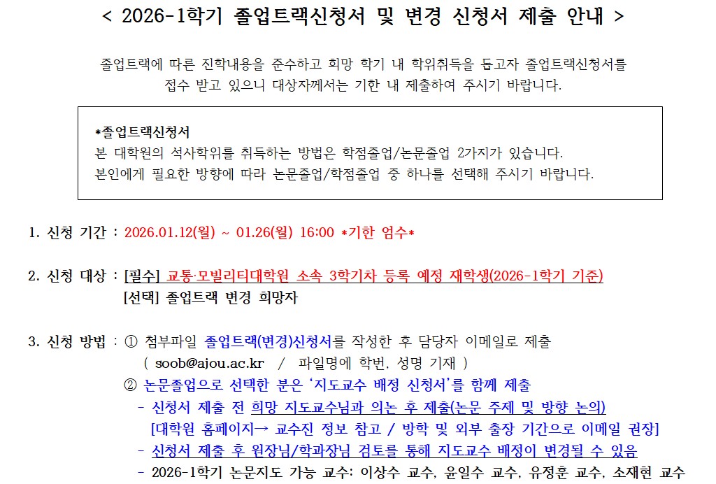 [학사] 2026-1학기 졸업트랙신청서 및 변경 신청서 제출 안내