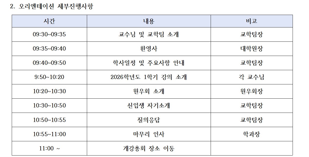 2026-1학기 신입생 오리엔테이션 및 개강총회 안내