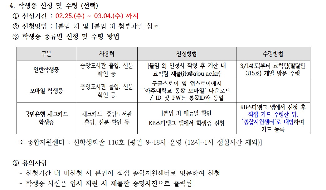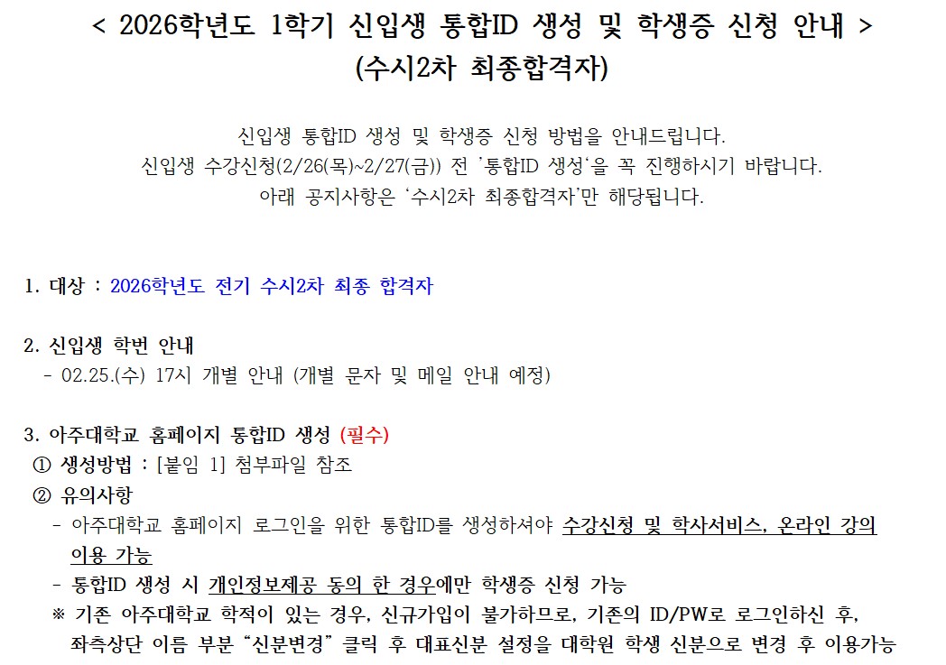 (수시2차 최종합격자 대상)2026학년도 1학기 신입생 통합ID 생성 및 학생증 신청 안내