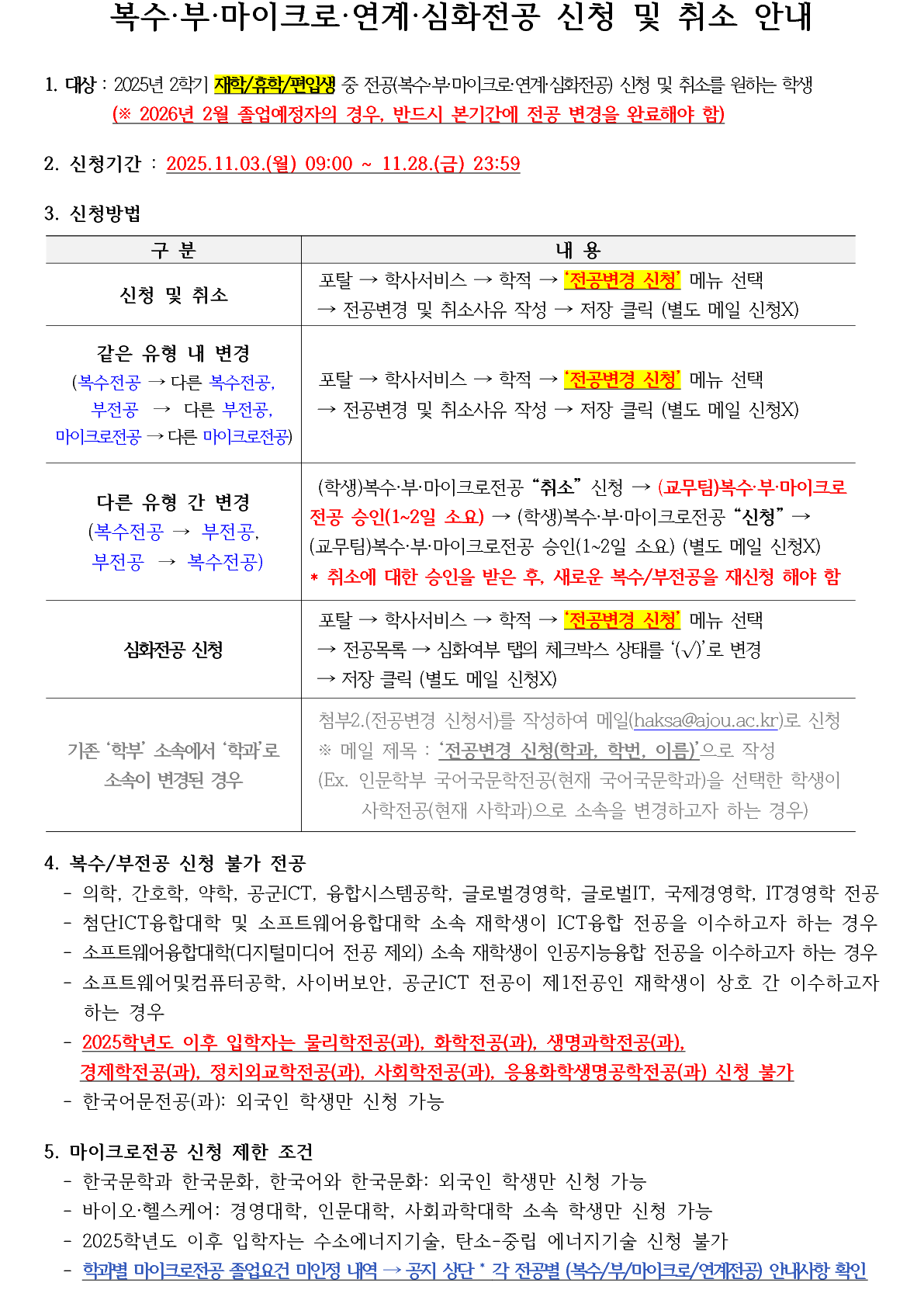 [공지] [학부] 전공(복수,부,마이크로,연계,심화전공) 신청 및 취소 기간 안내 (11.3.~11.28.) (10.30. 수정)