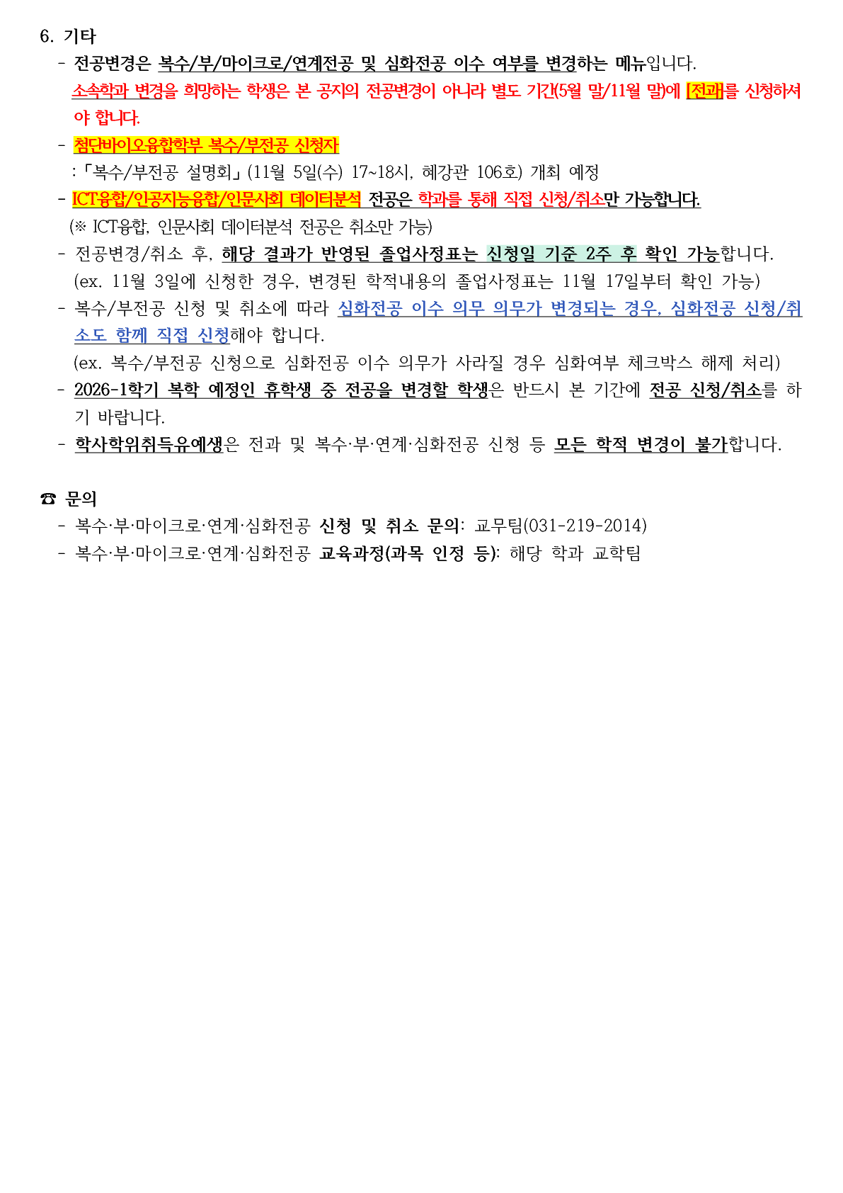 * 각 전공별 (복수/부/마이크로/연계전공) 안내사항: 클릭