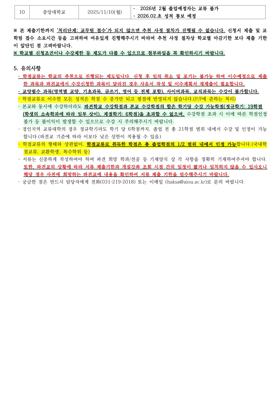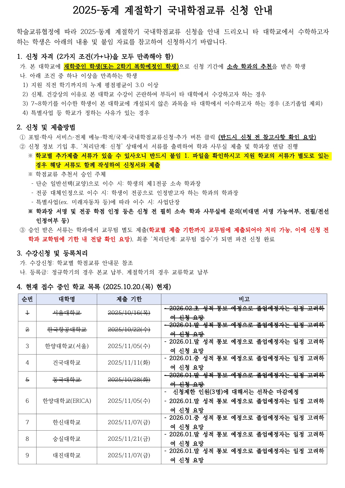 [학사] [학부/학사과정] (25.10.30.) 2025-동계 계절학기 국내대학 학점교류 신청 안내